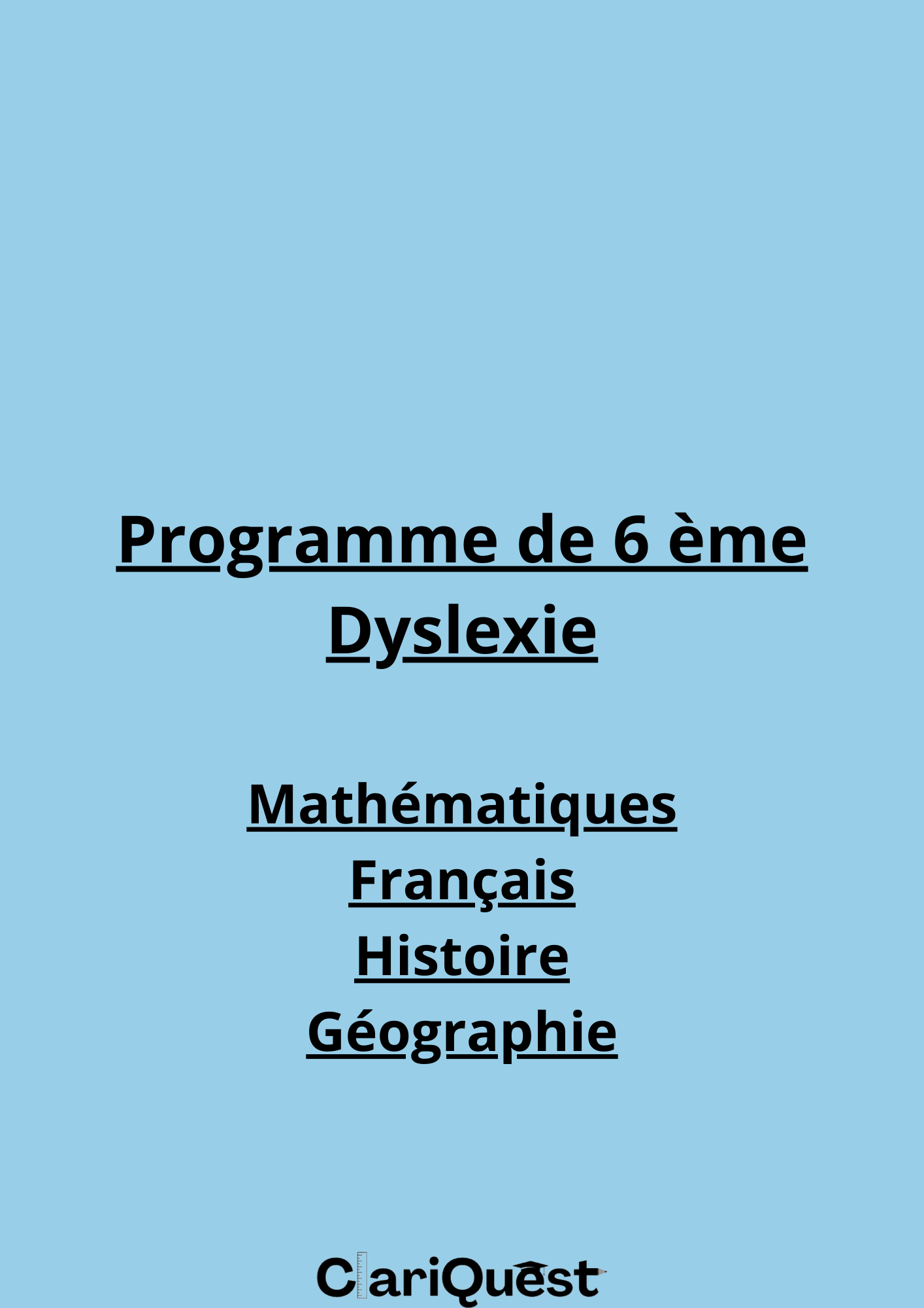 Programme de mathématiques de 6 ème adapté à la dyslexie